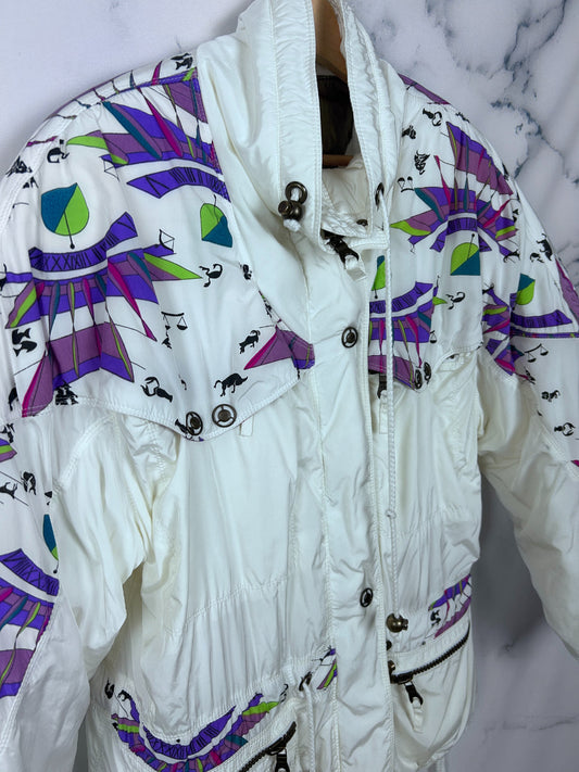 Ski jacket vintage en color blanco con estampado llamativo marca Ellesse