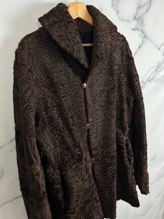 Abrigo vintage reversible en marrón chocolate de piel de astracán