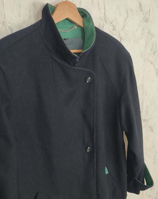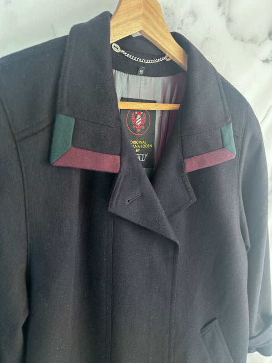 Abrigo vintage azul marino con detalles en solapas