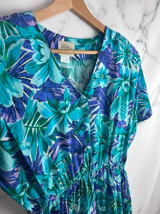 Vestido vintage con estampado floral en tonos turquesa - Geranio