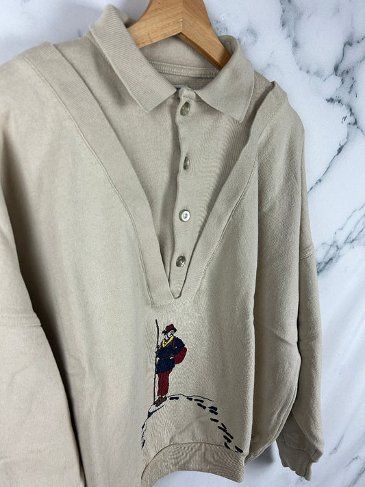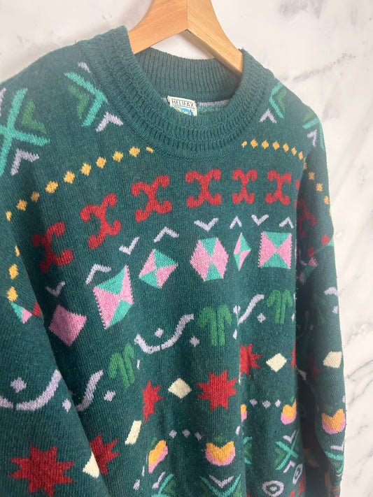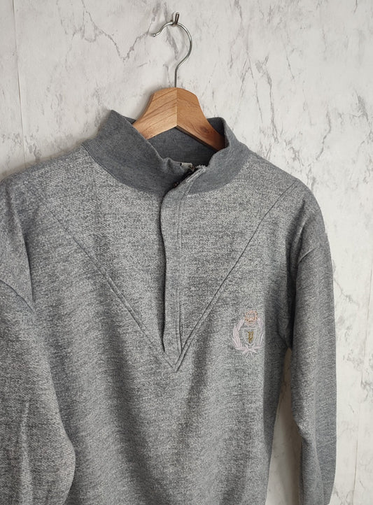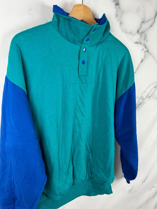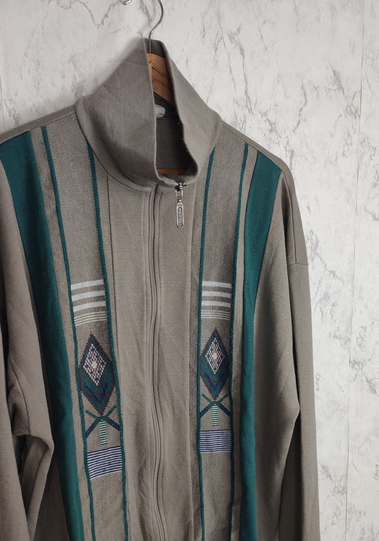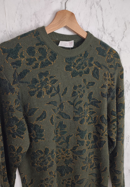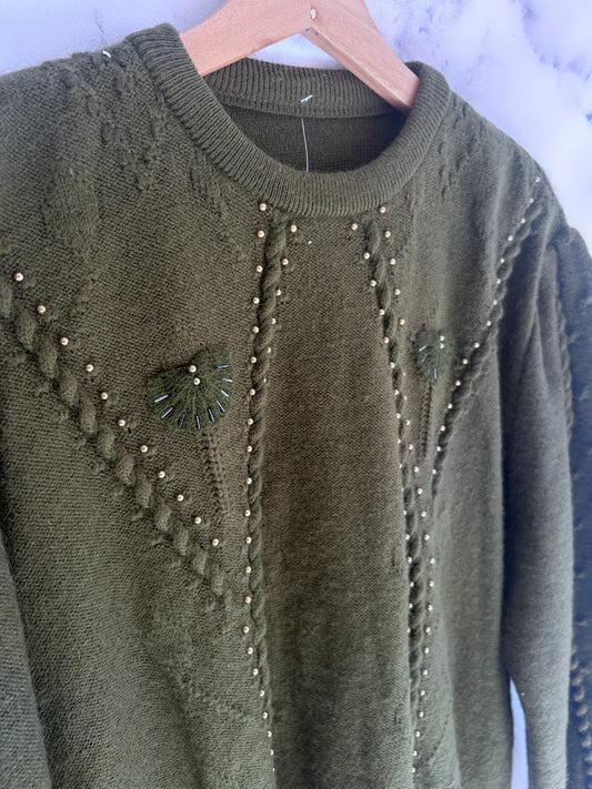 Jersey vintage en verde olivo con detalles de perlas y pedrería