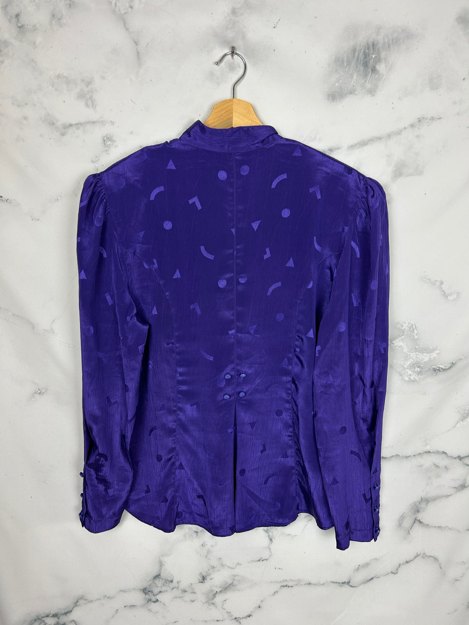 Blusa vintage morada con dibujos geométricos