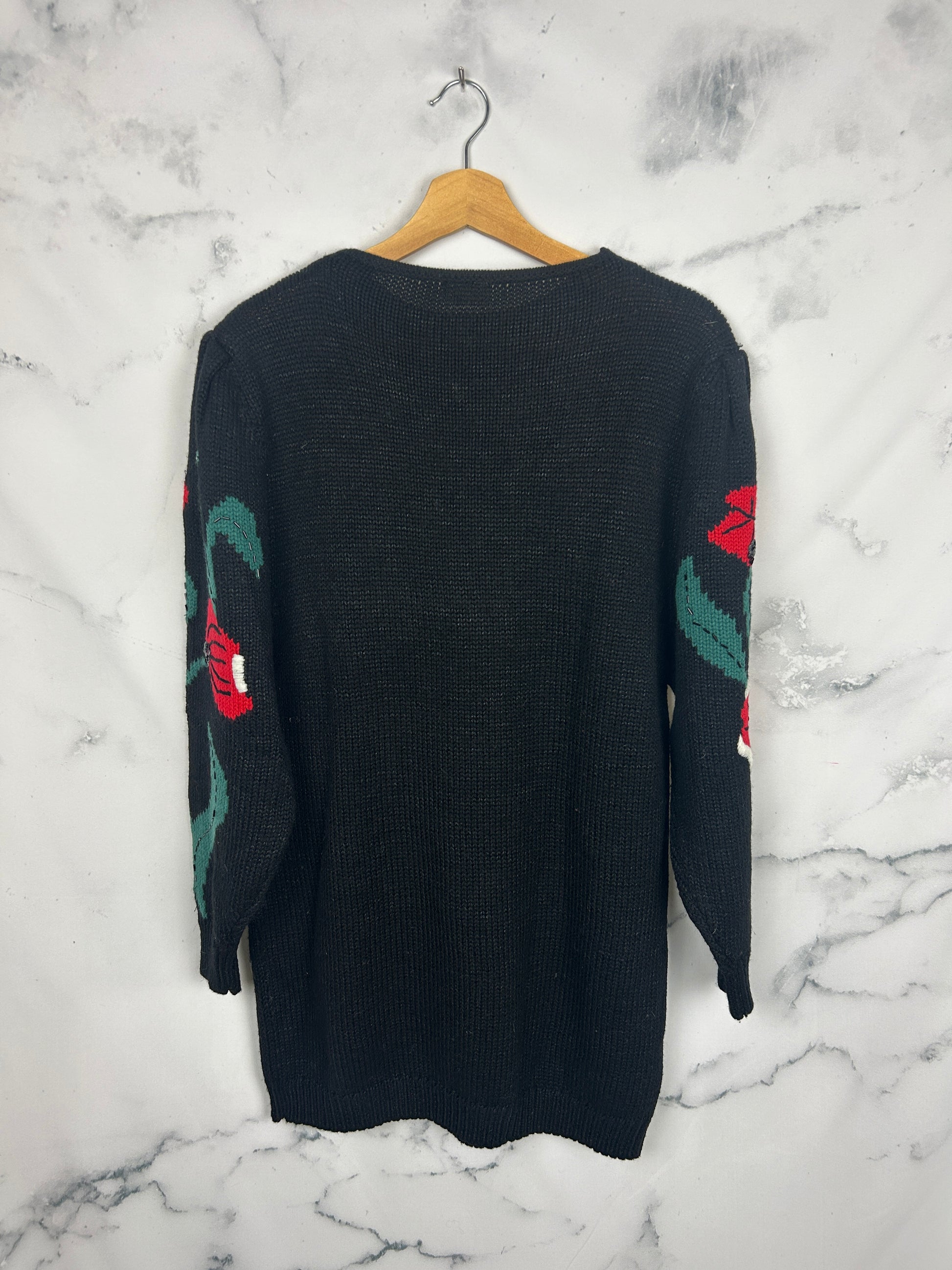 Jersey vintage con amapolas y pequeños detalles de lentejuelas y cuentas