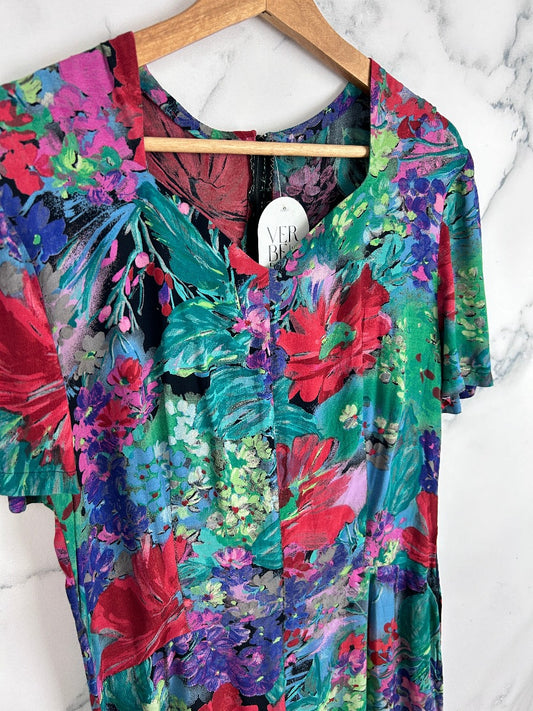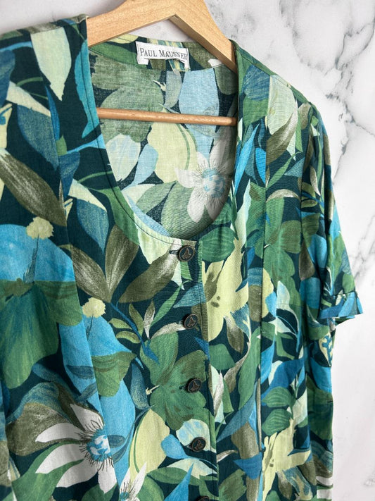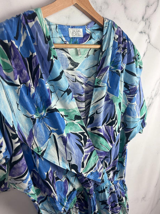 Vestido vintage con estampado floral en tonos turquesa - Geranio