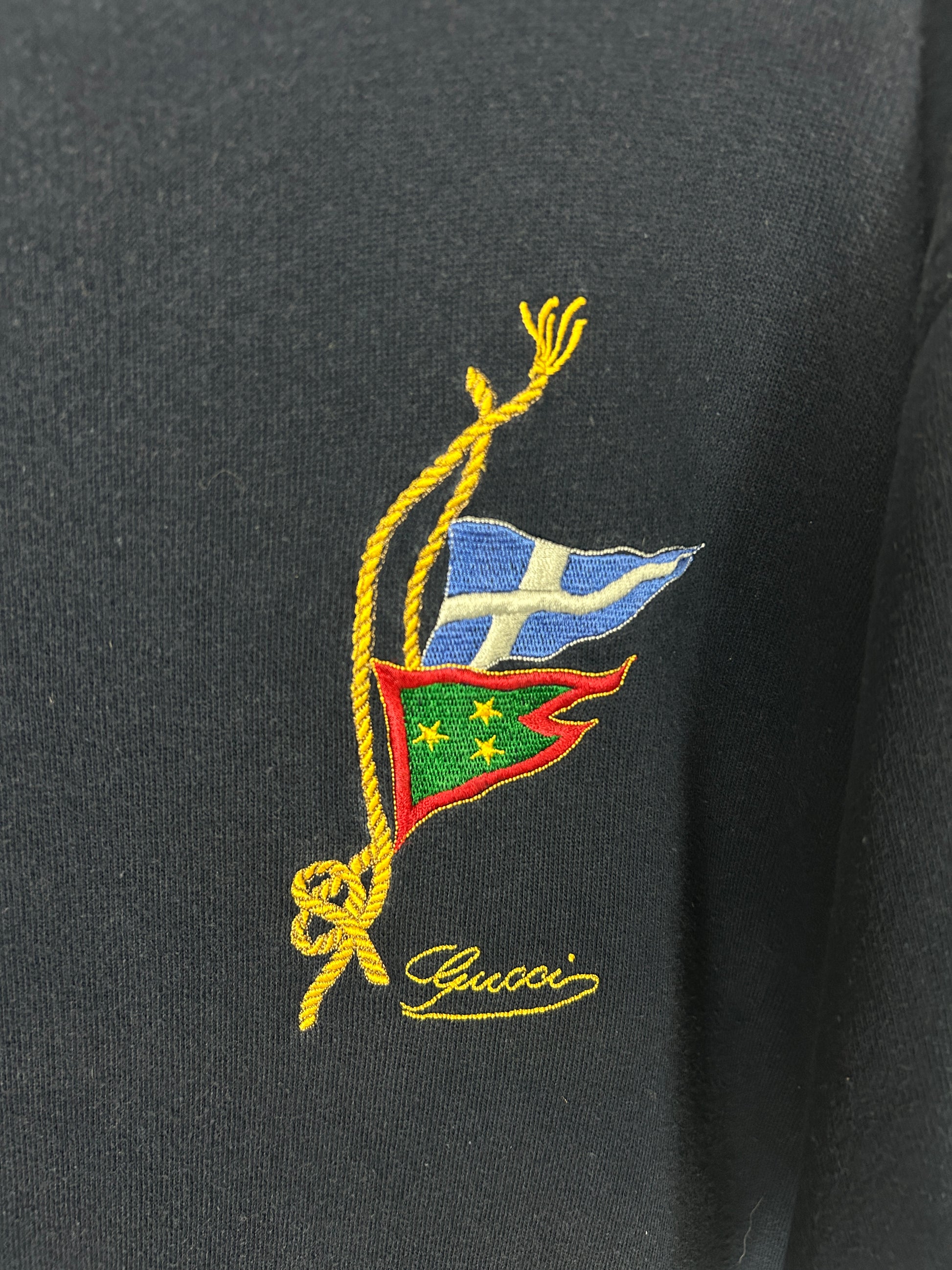 Prenda vintage de Gucci, confeccionada en Italia. Tipo oversize con bolsillo y bordado de la marca en el lateral derecho.