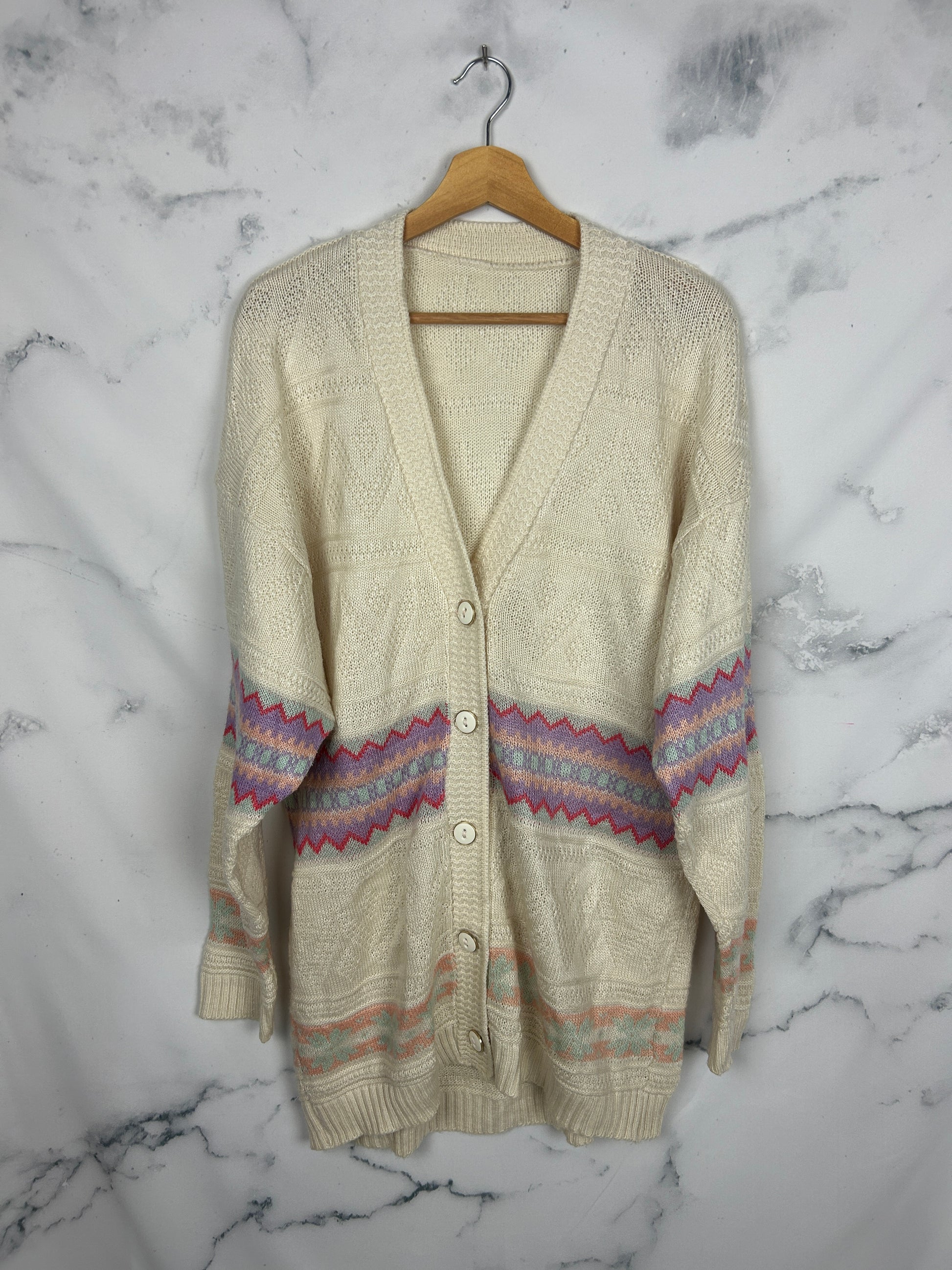 Maxi cárdigan vintage en blanco roto con bonitos botones