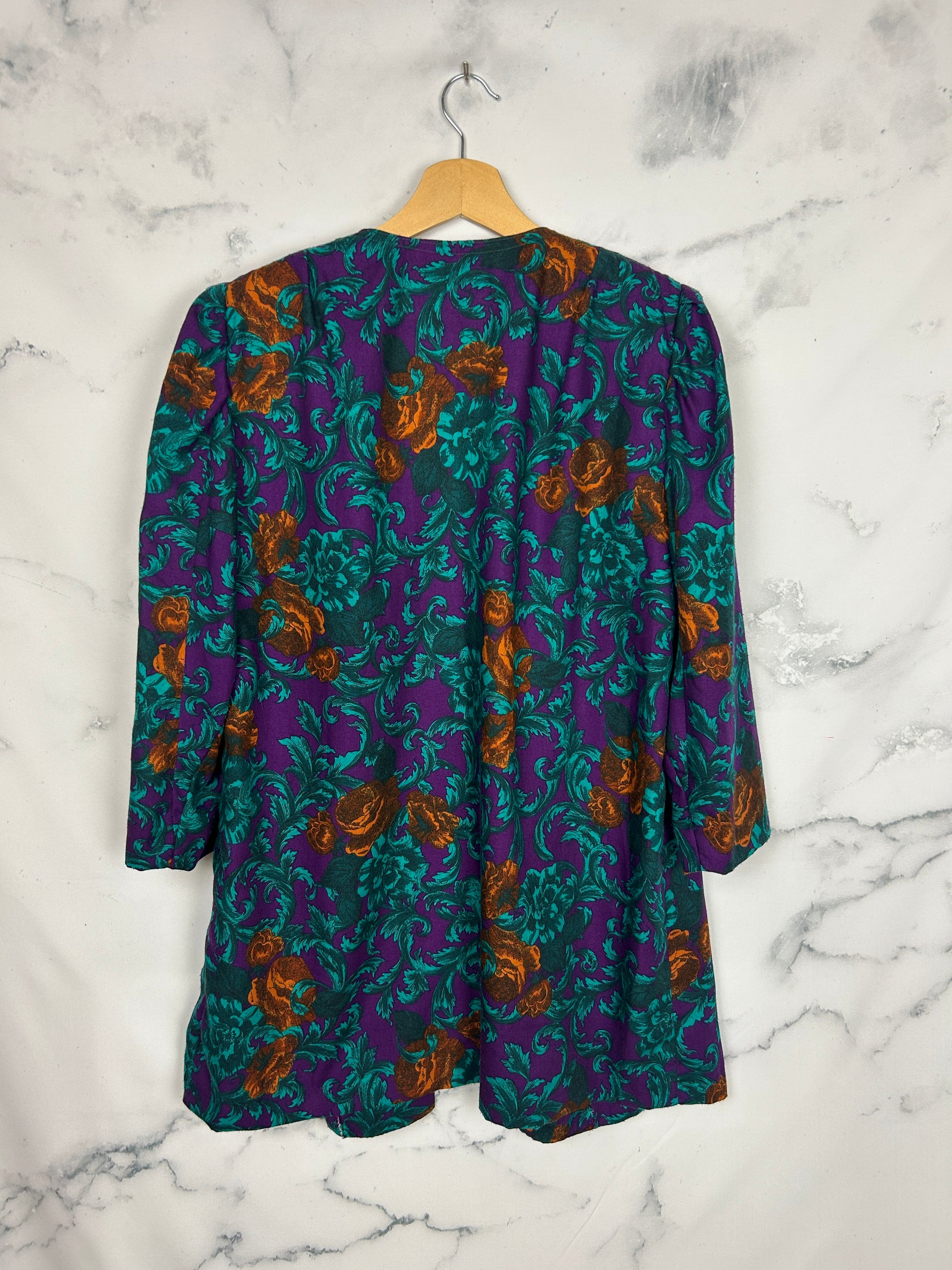 Blazer vintage con estampado floral y hombreras. Es hecha a mano.