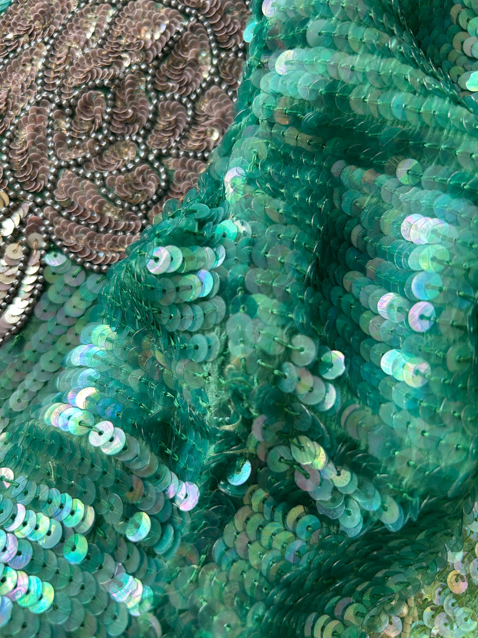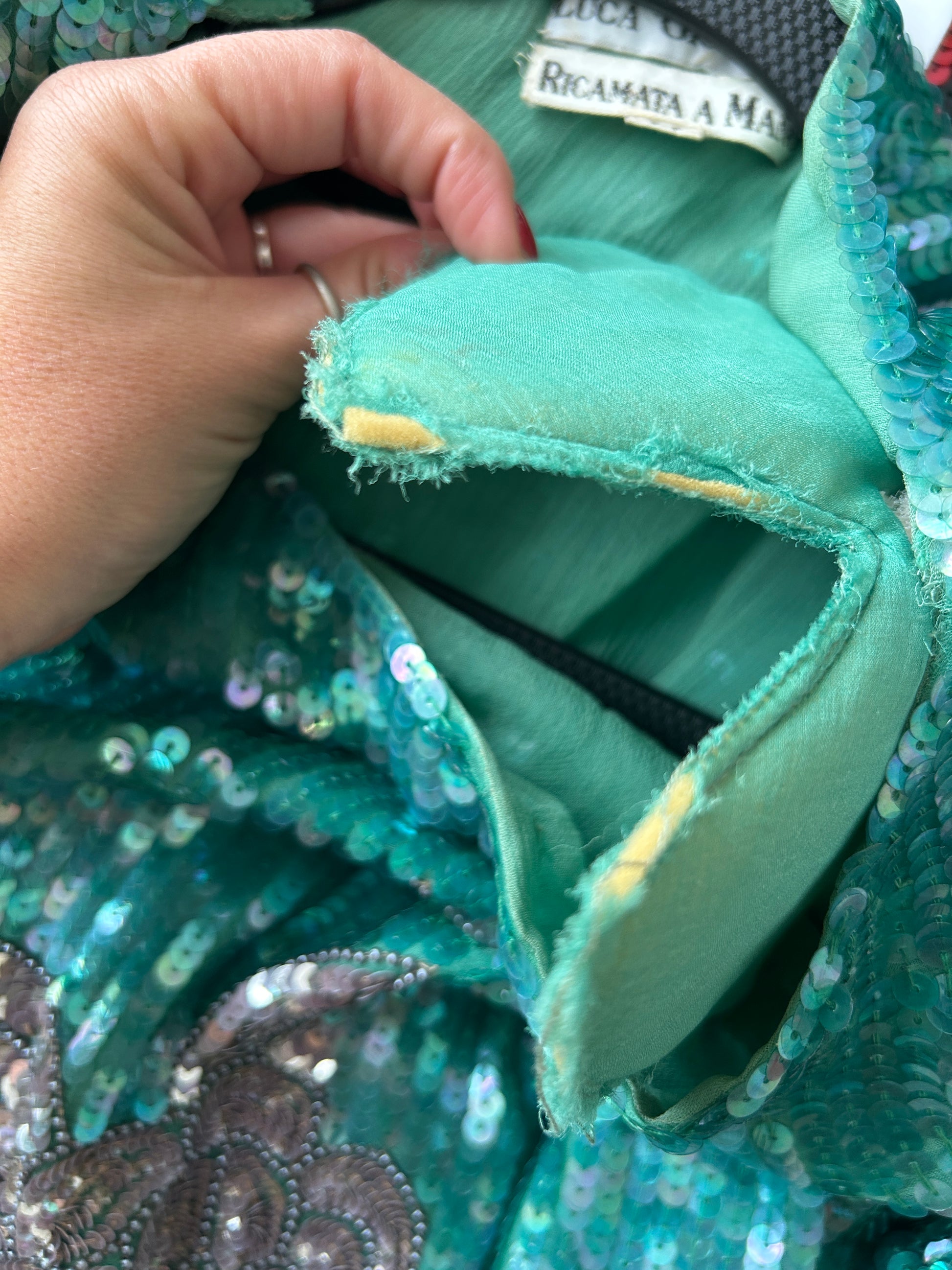 Blusa vintage de fiesta en color turquesa con lentejuelas