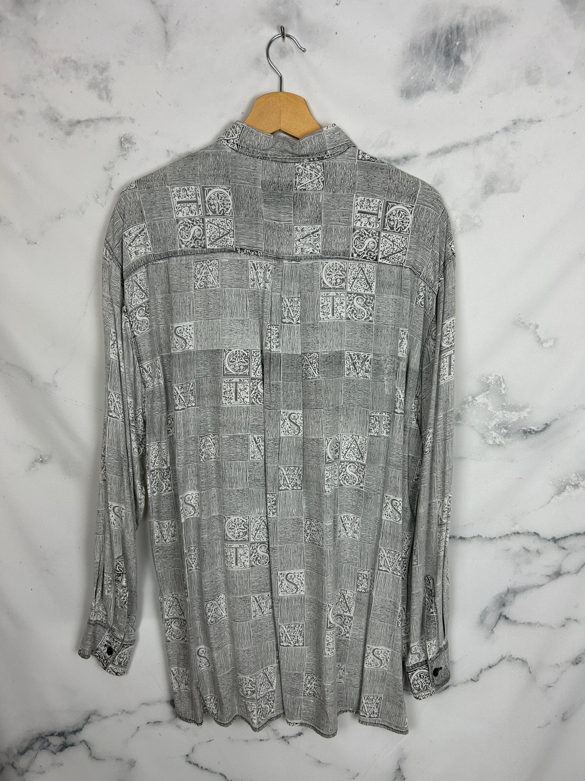 Camisa vintage gris con estampado geométrico. Ideal para chico o para chica.