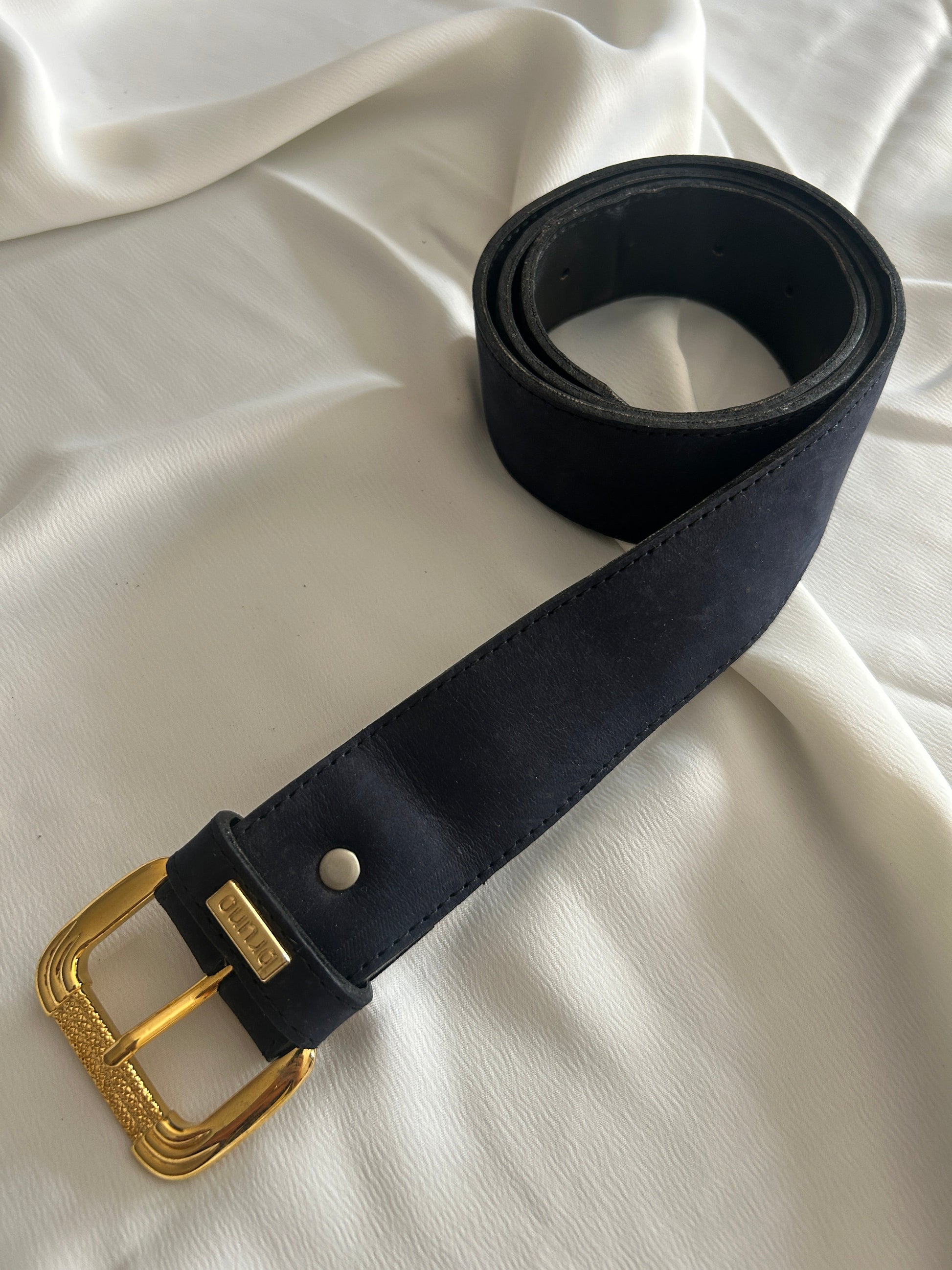 Cinturón vintage Bruno. Es de color azul marino y con hebilla dorada. Hay 2 unidades disponibles.